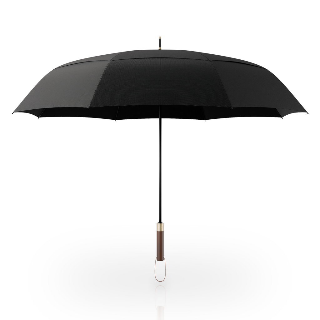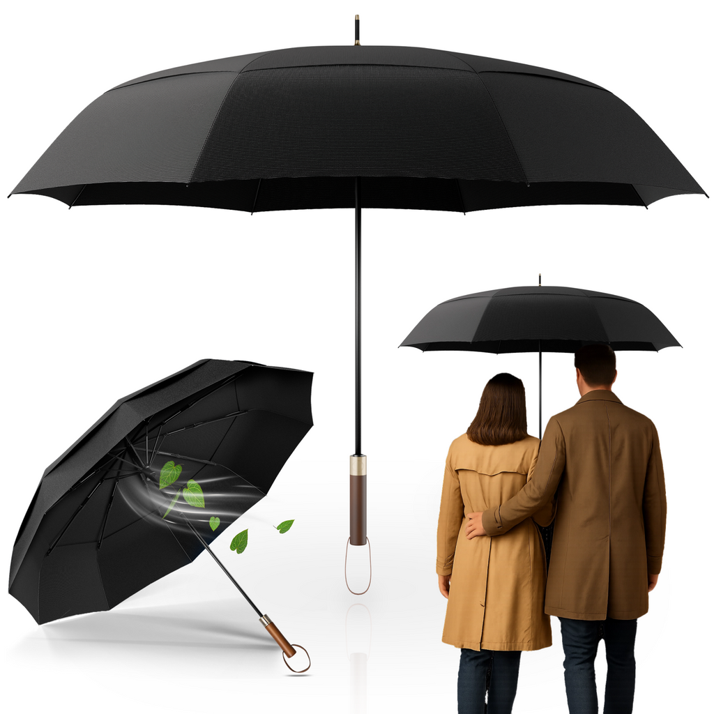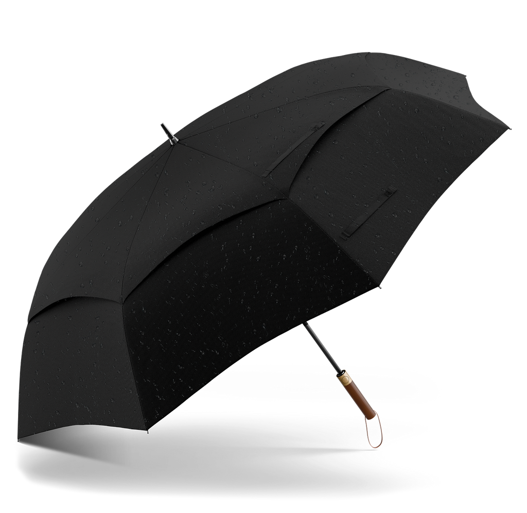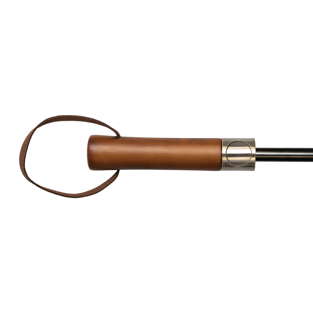 Der hochwertige Echtholzgriff ist nicht nur elegant, sondern liegt auch hervorragend in der Hand. Er unterstreicht das stilvolle Design des Schirms und sorgt für hohen Tragekomfort, besonders in Kombination mit der praktischen Tragehülle.